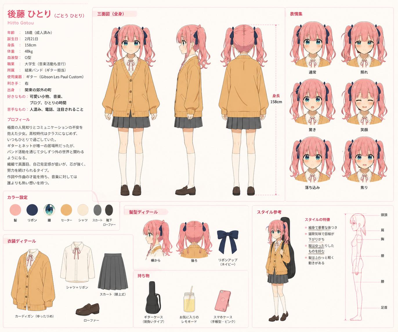 | … | 1426/04/26(日)20:20:59No.1424119194+ぼっちちゃんとか後藤ひとりとかそういうワードを一切入れずに設定とか三面図頼んだらこれが出てきて笑ったんだけど |