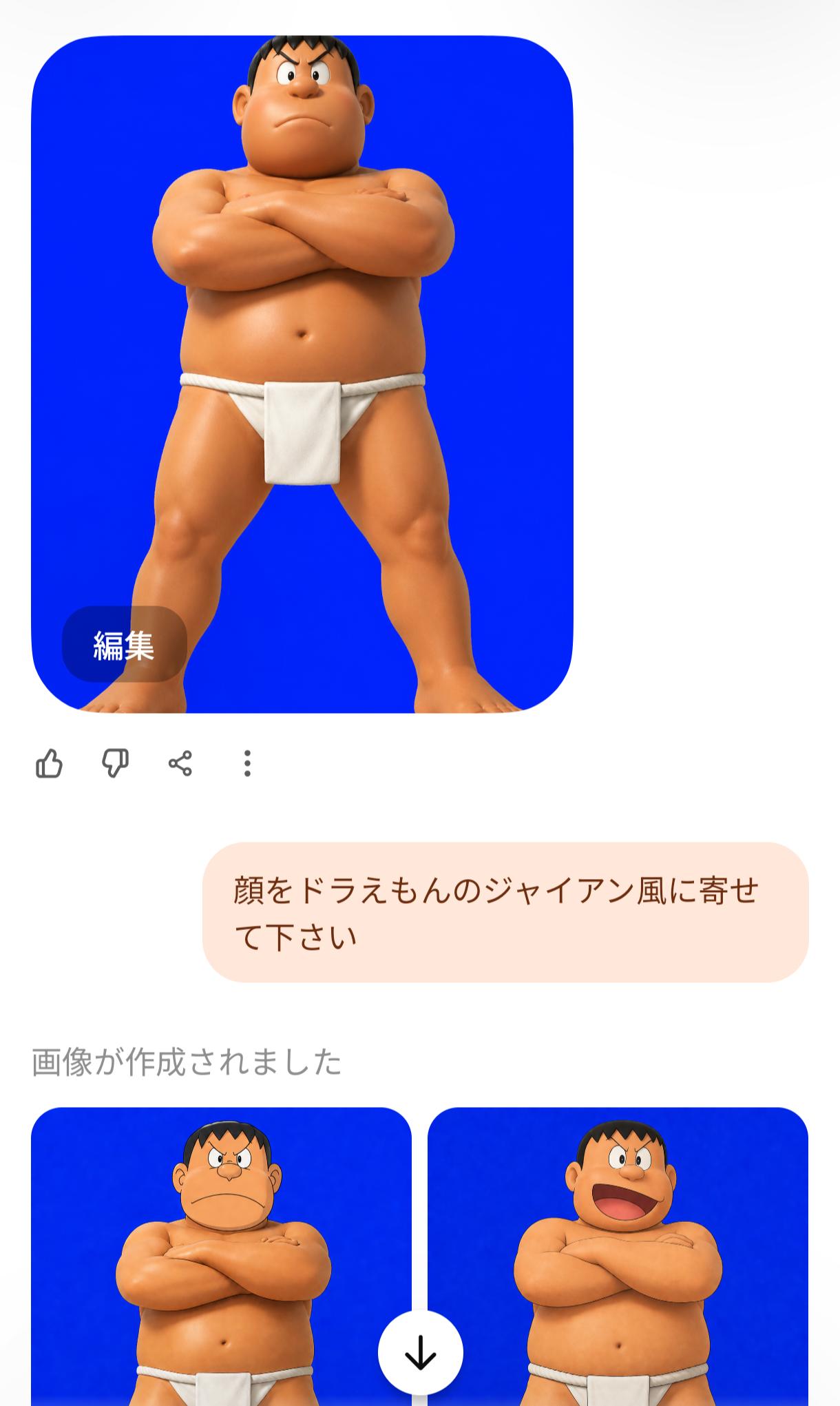 | … | 1226/04/26(日)20:20:28No.1424118937+前のチャットで🤖マイクロ丈見たがってんだな…ってしておくと指示しなくても出してくると思う |