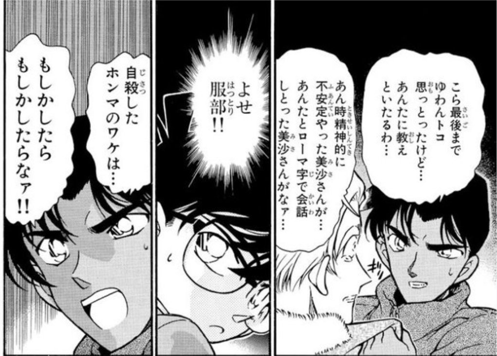 | … | 4826/04/26(日)22:20:03No.1424175422+>>これ和葉と服部が崖落ちた時の話だっけ |