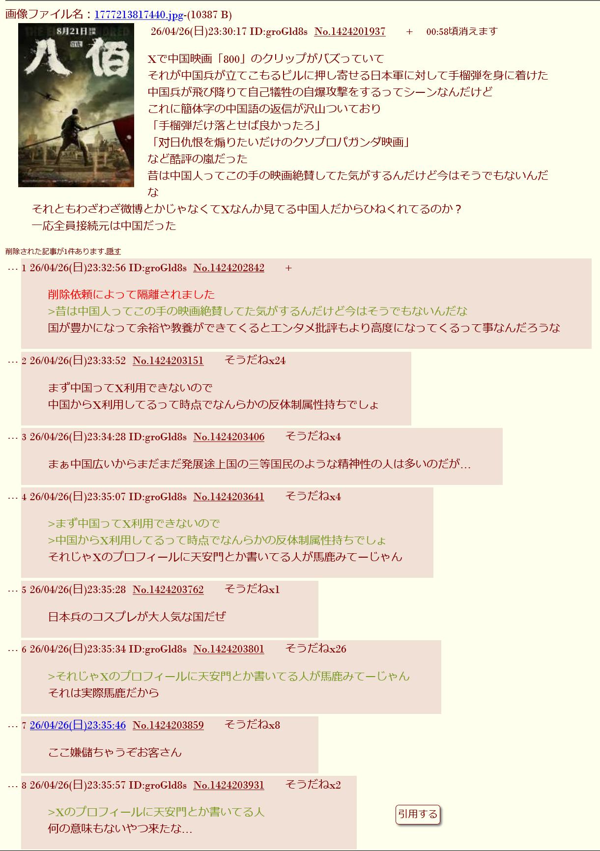 | … | 5426/04/26(日)23:57:15No.1424211220+>これに簡体字の中国語の返信が沢山ついており |