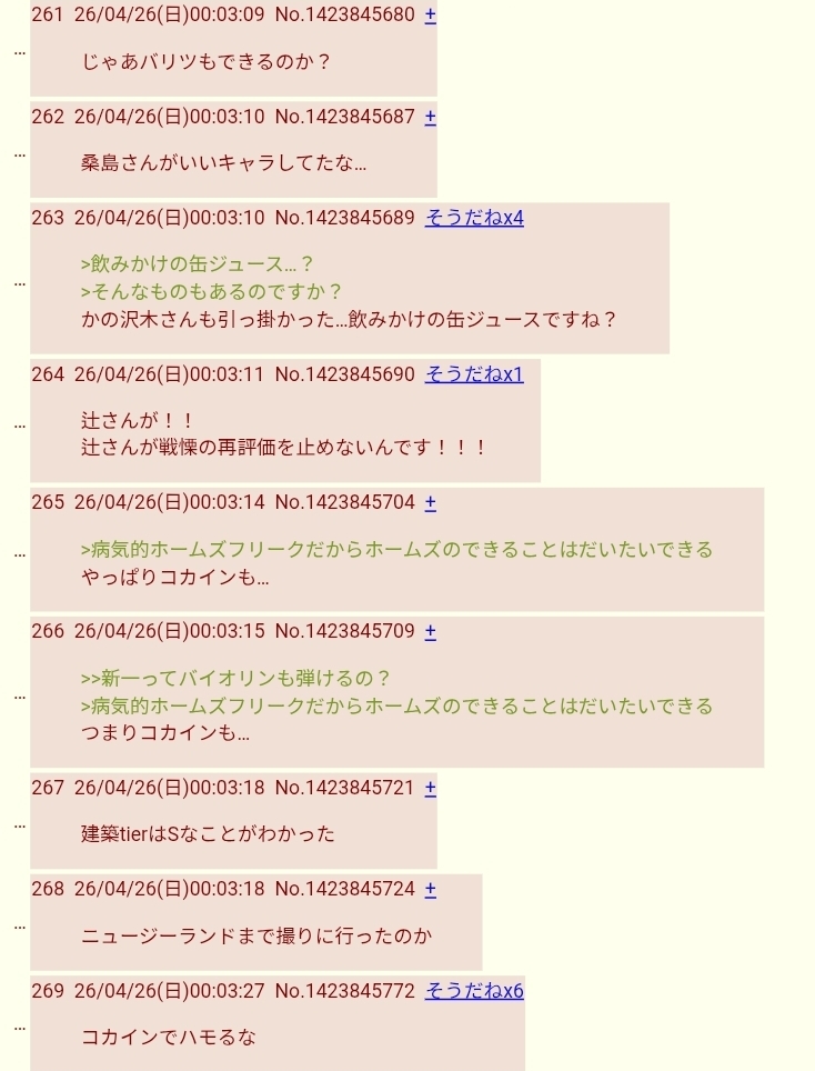 | … | 61926/04/27(月)01:21:41No.1424235429+辻が人気キャラなの笑っちゃうよ |