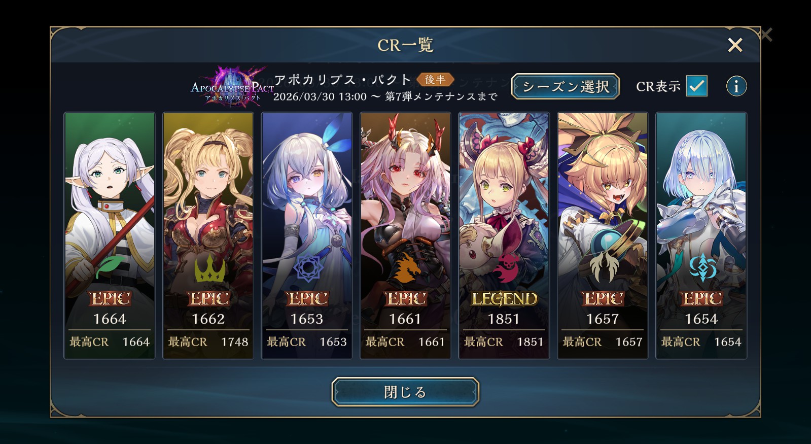 | … | 4226/04/27(月)01:47:32No.1424239282+今期かなりモチベあったんだけど34000でフィニッシュルナ |