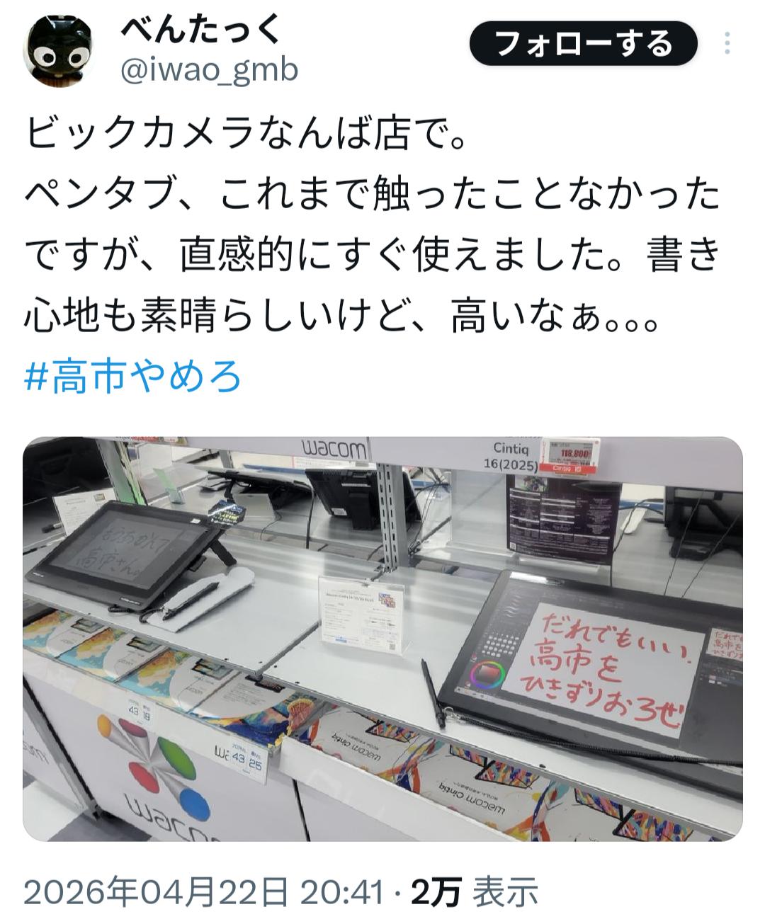 | … | 7626/04/27(月)10:04:17No.1424275261+ぺんてるの試し書きコーナーも高市やめろで埋めるからなコイツら 狂ってる |