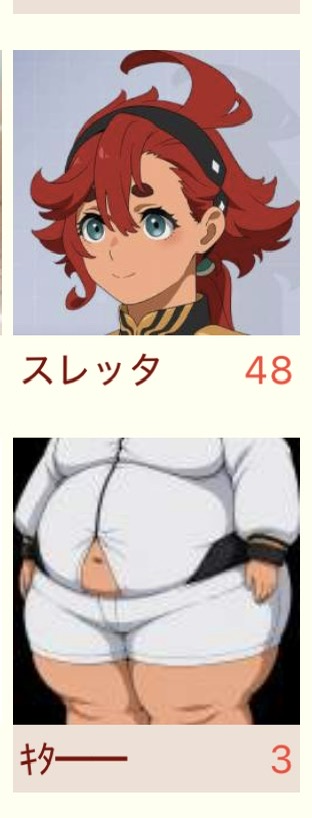 | … | 3726/04/27(月)13:20:38No.1424312695+>グエルやエランが惚れてるから美人なんだろ |
