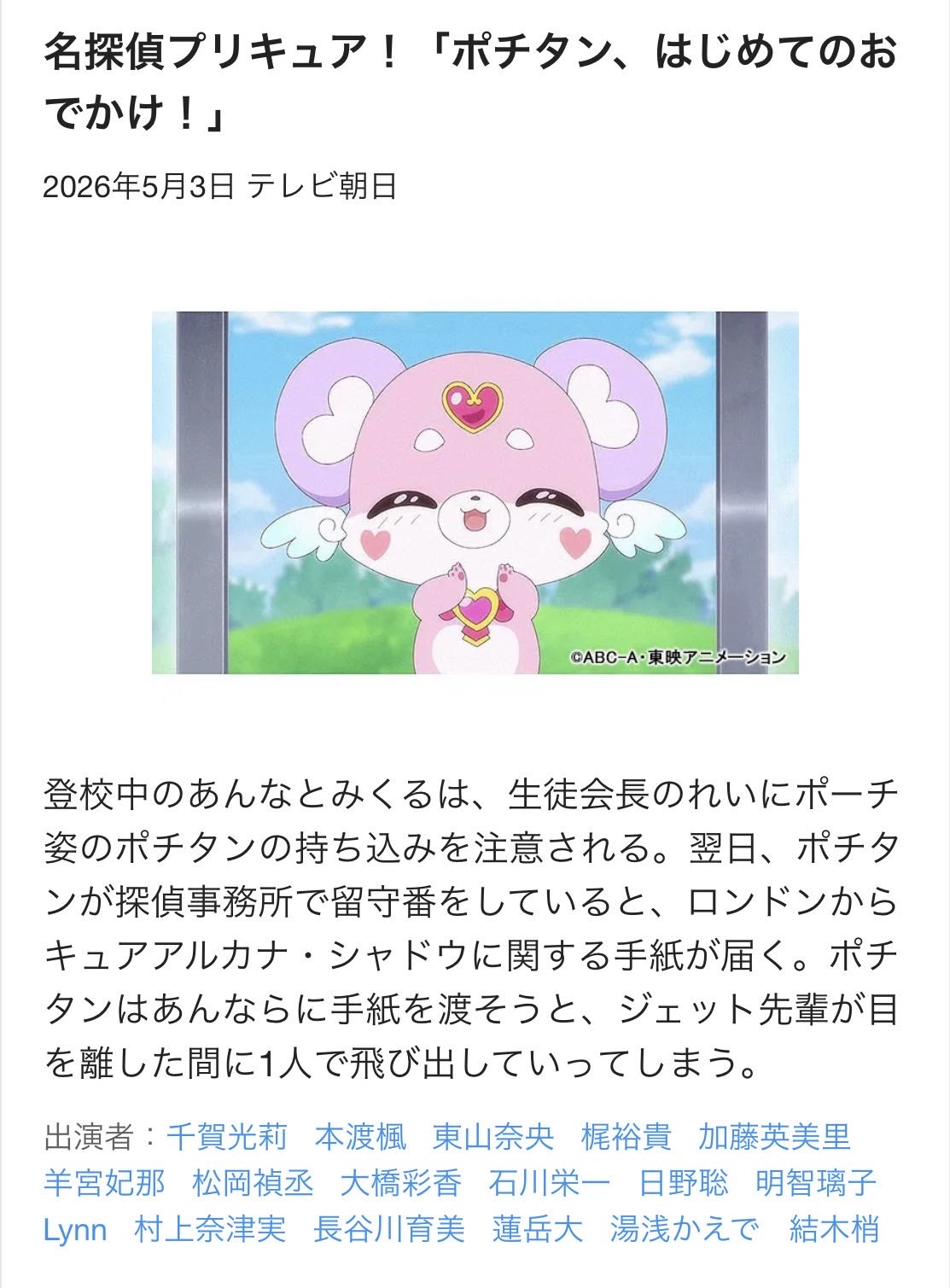 | … | 3526/04/27(月)19:21:10No.1424390391そうだねx3>この番組表は毎回レギュラーキャストを紹介してるから出る訳じゃないよ |