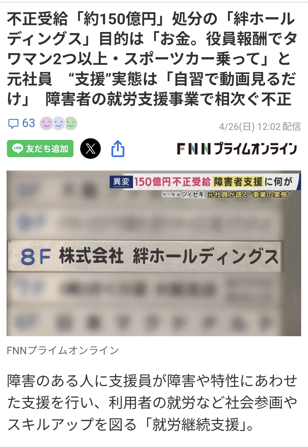 | … | 4026/04/27(月)19:23:16No.1424391123+>eスポーツで就労継続支援とか抜かしてる事業所が大っぴらにあるんだから不正なんてよくあることだよ |