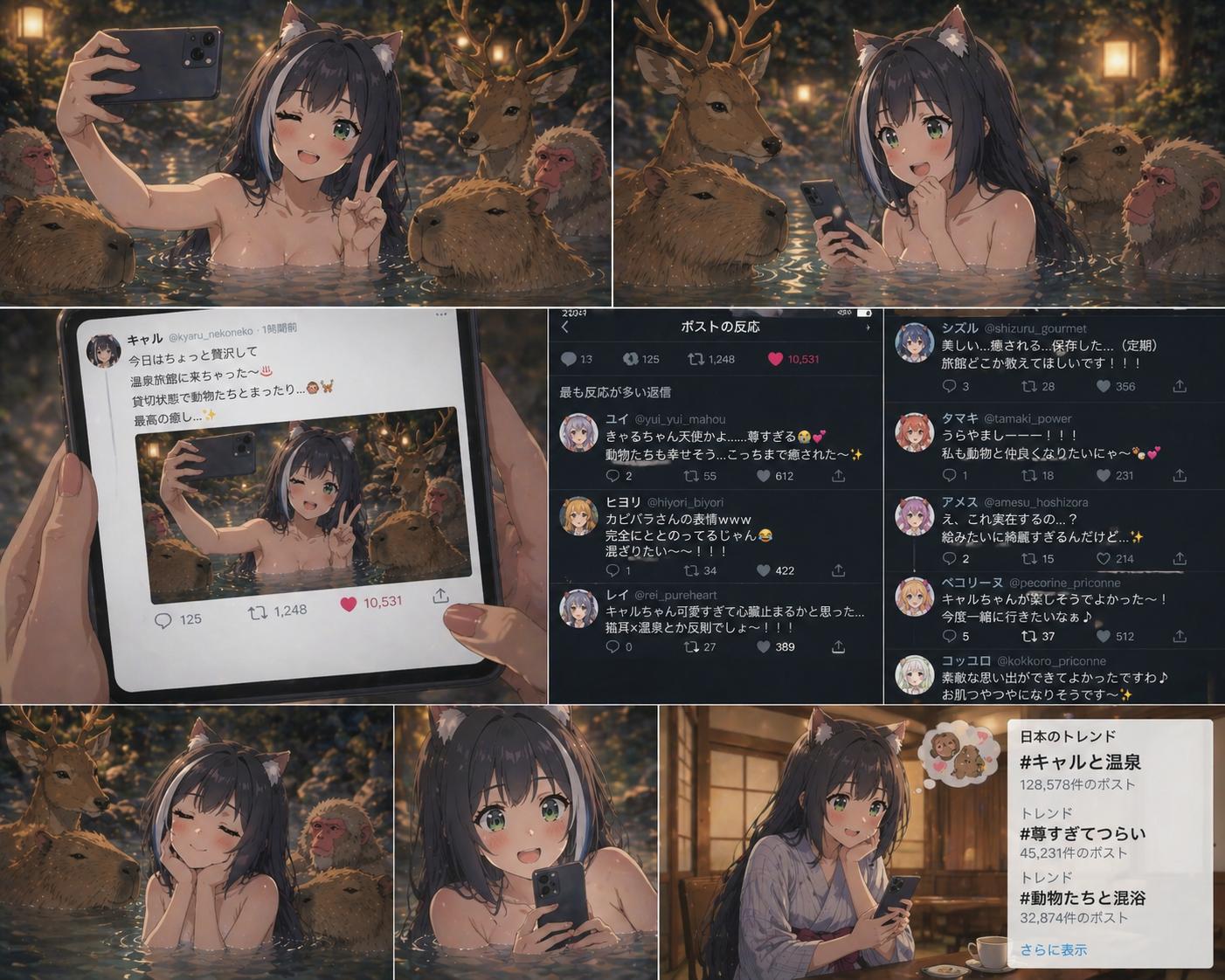 | … | 8826/04/27(月)20:48:43No.1424426290+f323699.png こういうシャワールームの個室にそれぞれのキャラが入ってて手前に半透明のドア付ける構図が他のAIだと全然安定しなかったからマジで嬉しい |