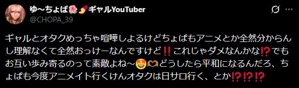 | … | 21826/04/27(月)22:50:29No.1424476993そうだねx1ぶっちゃけギャルって年齢制限があるけどオタクは年齢制限ないし… |