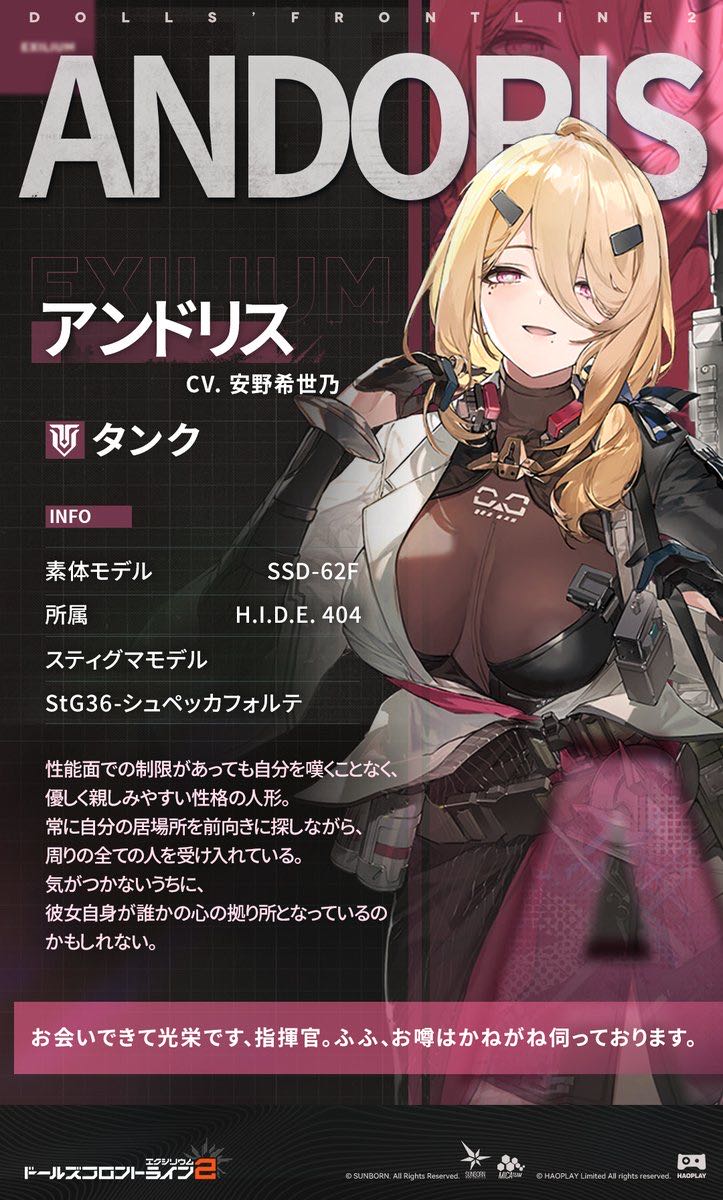 | … | 1126/04/27(月)21:46:01No.1424450125そうだねx2>何てゲーム? ドールズフロントライン2 エロシリウム >開発会社は? Sunborn |
