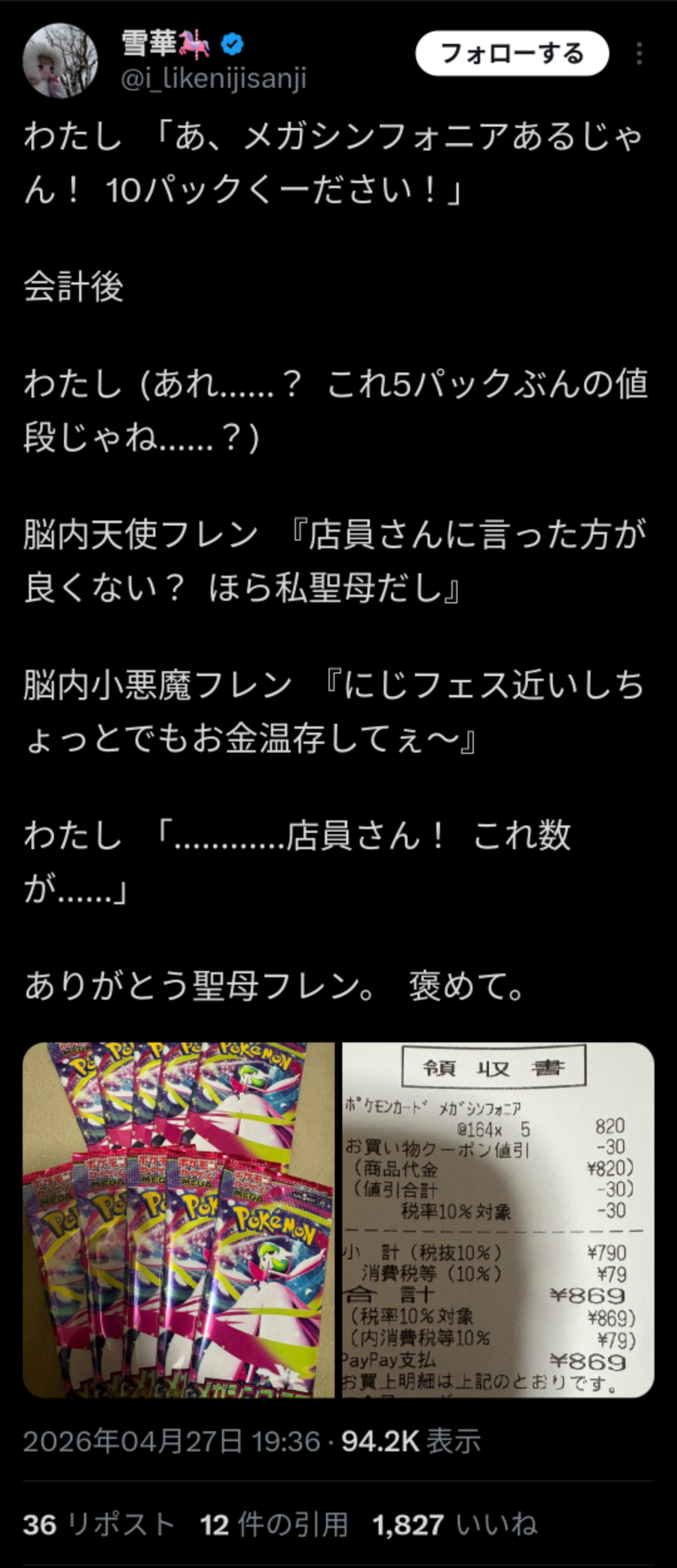 >流石追加のレシート映してないから嘘だと認定する男だ