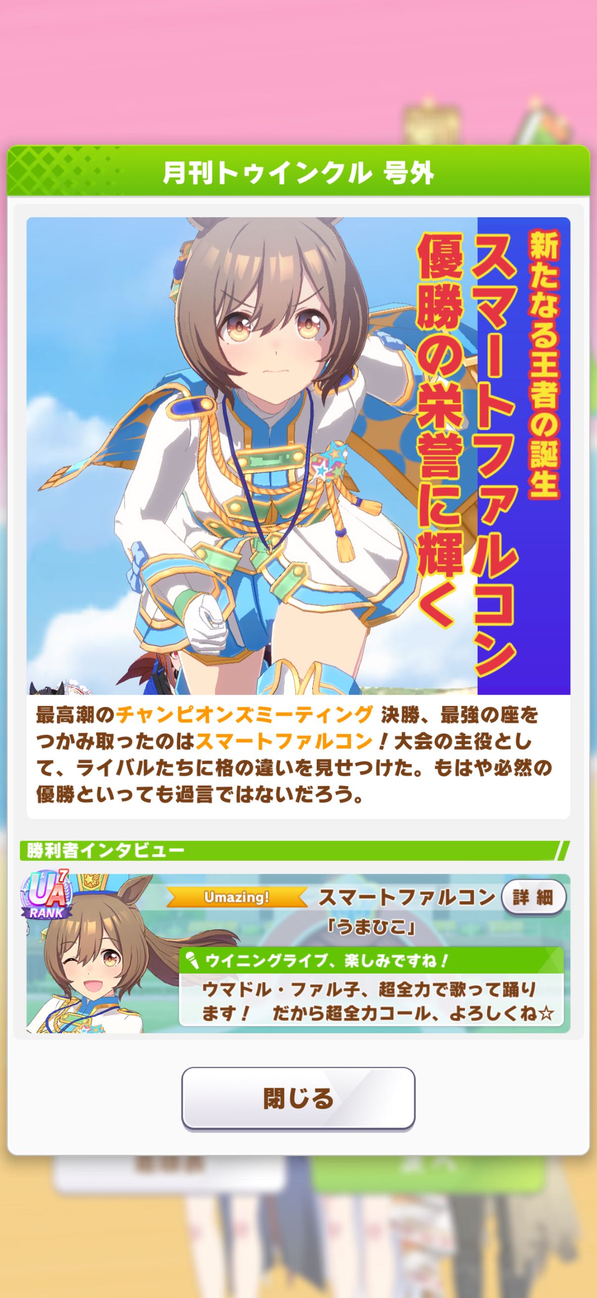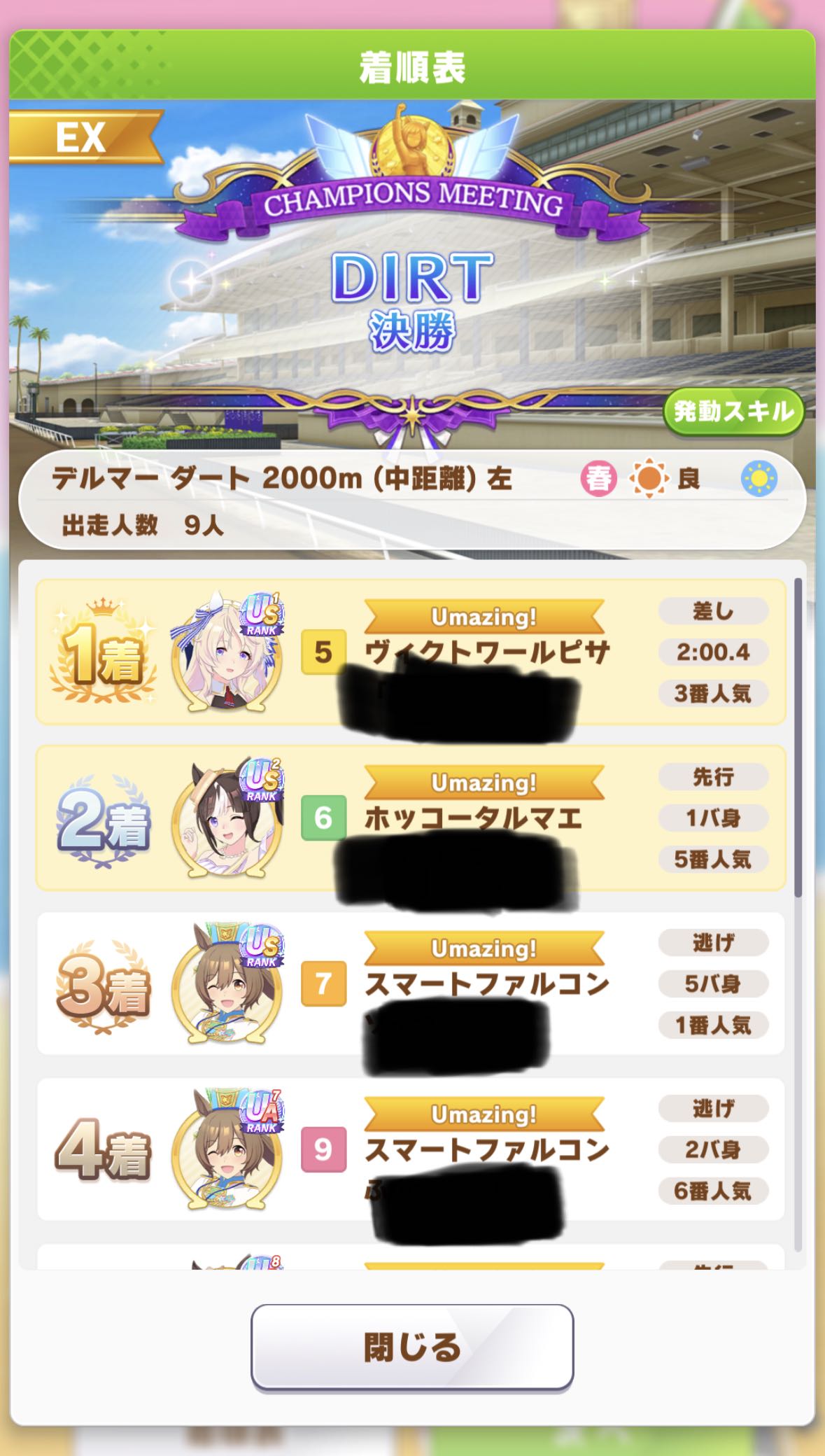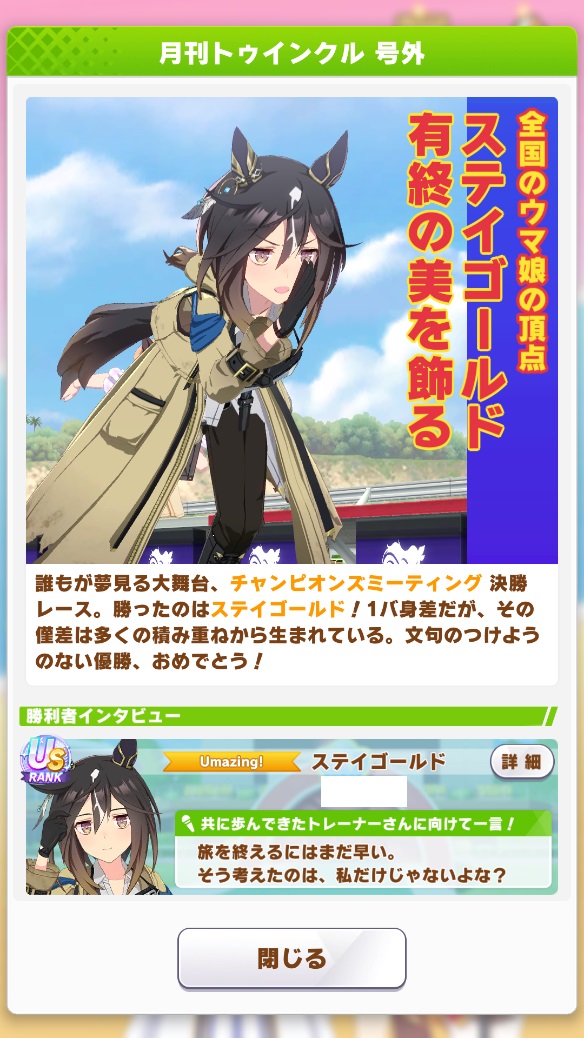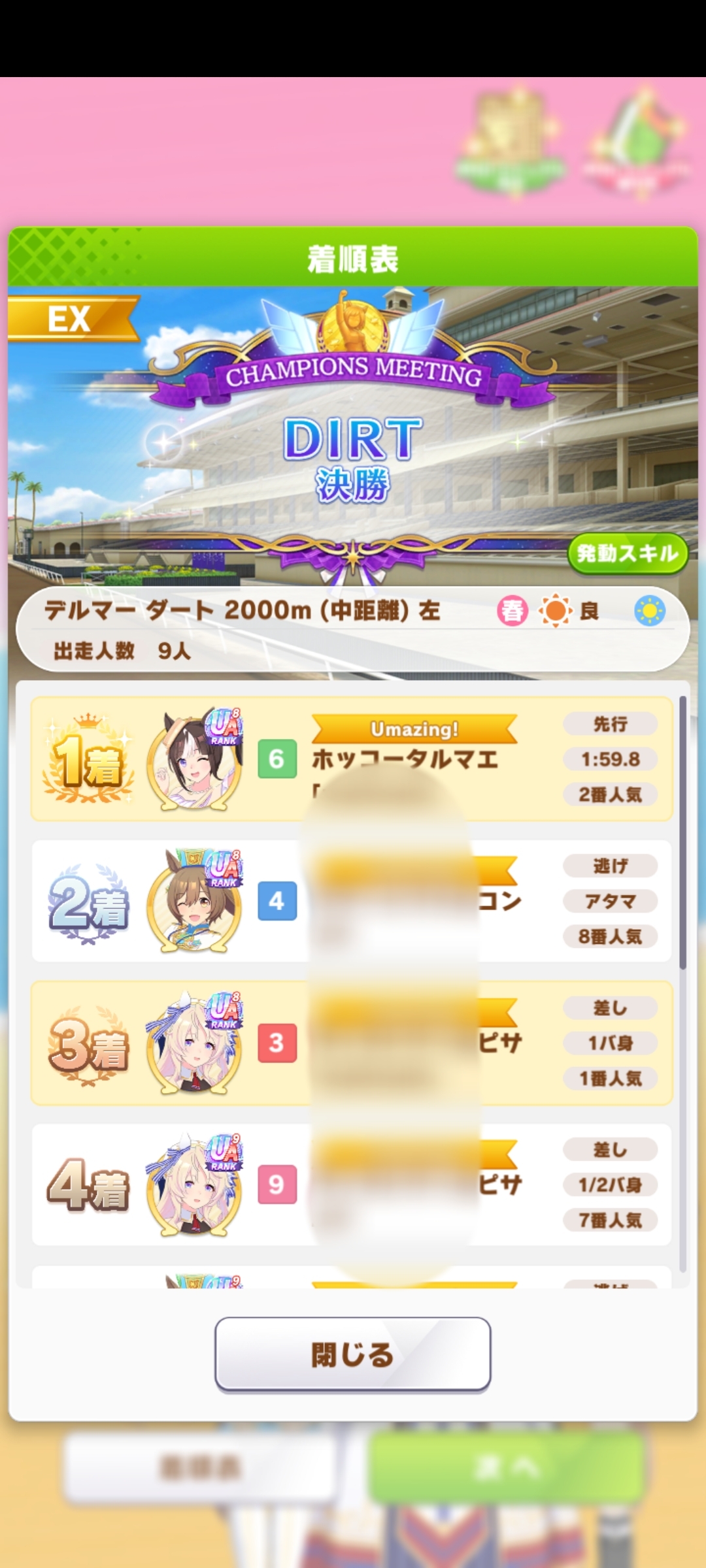 | … | 1326/04/28(火)12:06:28No.1424582822+ハナ差で2位だったのだ 型落ちサポカ編成でよくやったのだ |