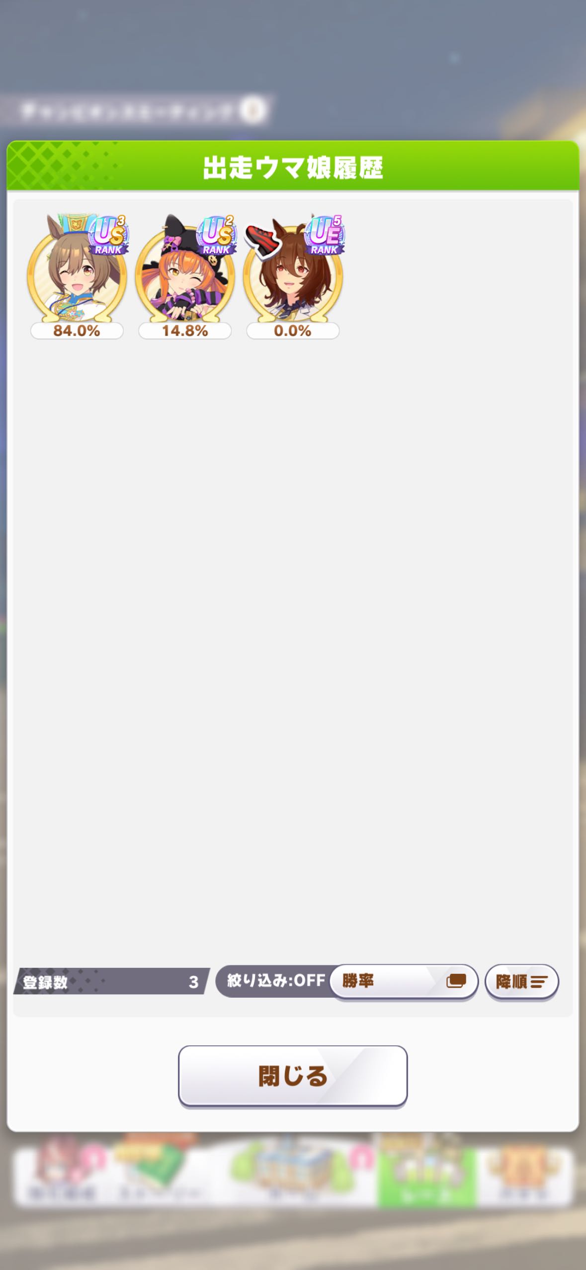 | … | 53326/04/28(火)13:22:16No.1424605458+>スタミナ育成して普通に快勝だったのだ >慣れない根性育成よりこなれてきてるスタミナ育成が時短にもなり正義だったのだ 根性育成で継承親からってなって仕上げきれなかった人は多いと思うのだ 特に逃げは必須白因子多すぎなうえに青因子にスタも必要ってなったら完成しねえのだ |