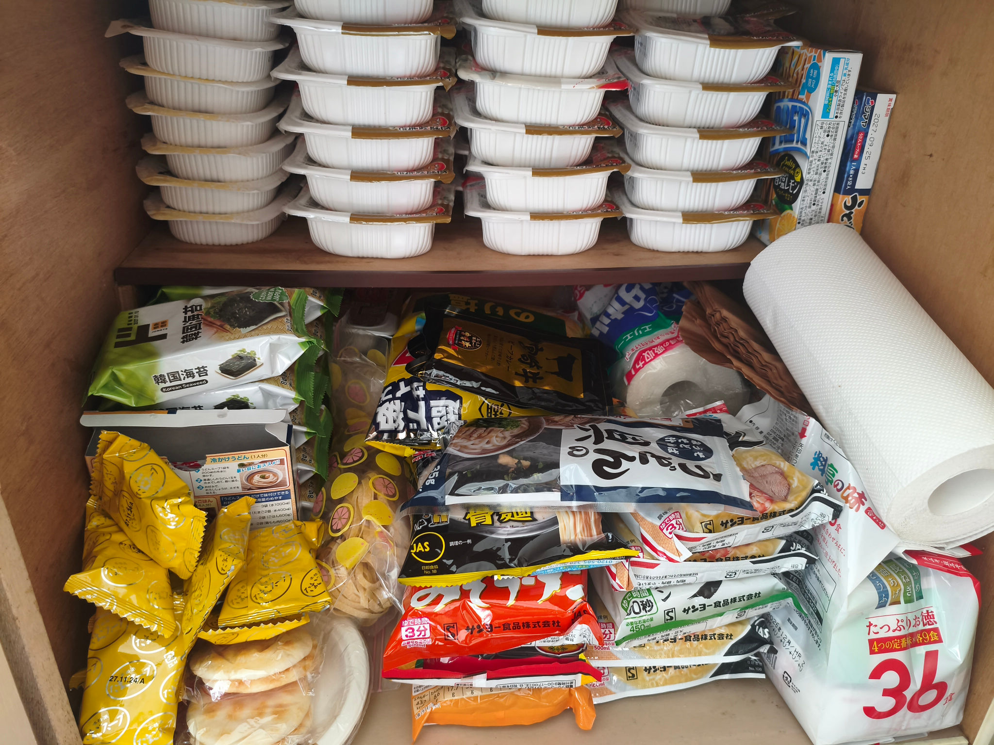 | … | 2226/04/28(火)15:56:58No.1424641641+パックご飯200個くらいとパスタ45キロあるわ |