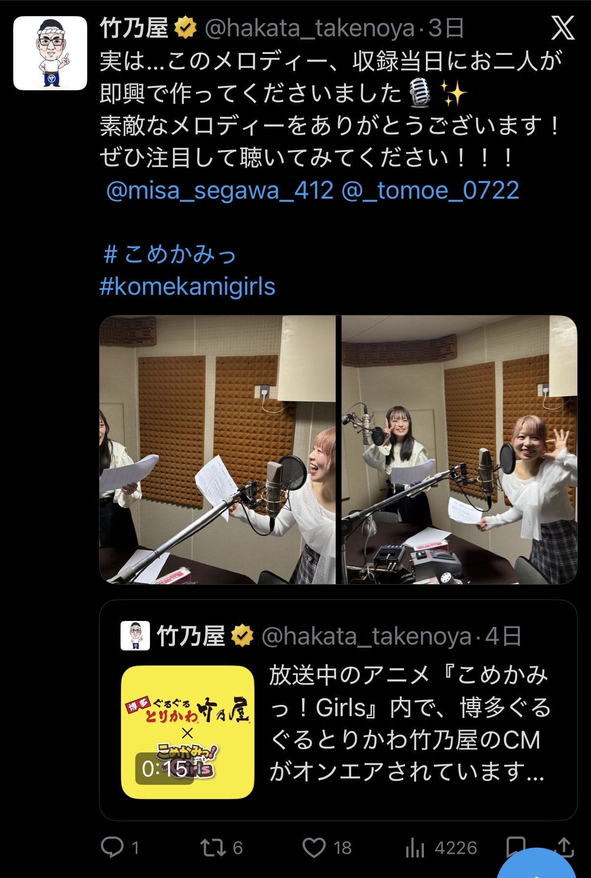 | … | 59026/04/29(水)01:52:51No.1424831511+>>OP担当したアニメの放送中に活動休止して放送中に活動再開した |
