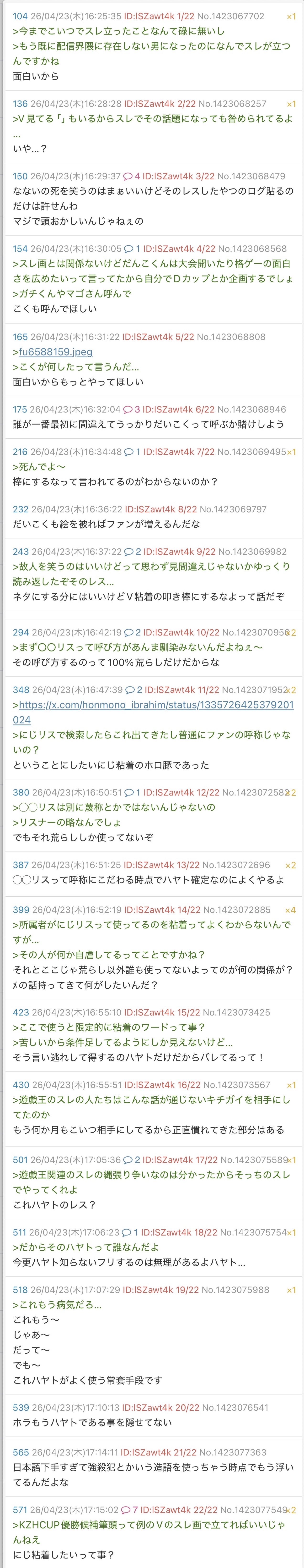 | … | 58126/04/29(水)09:28:58No.1424870120+なんでホロ粘着してるの掘ったら高確率でどこぞのリスナーなんだろうね… |