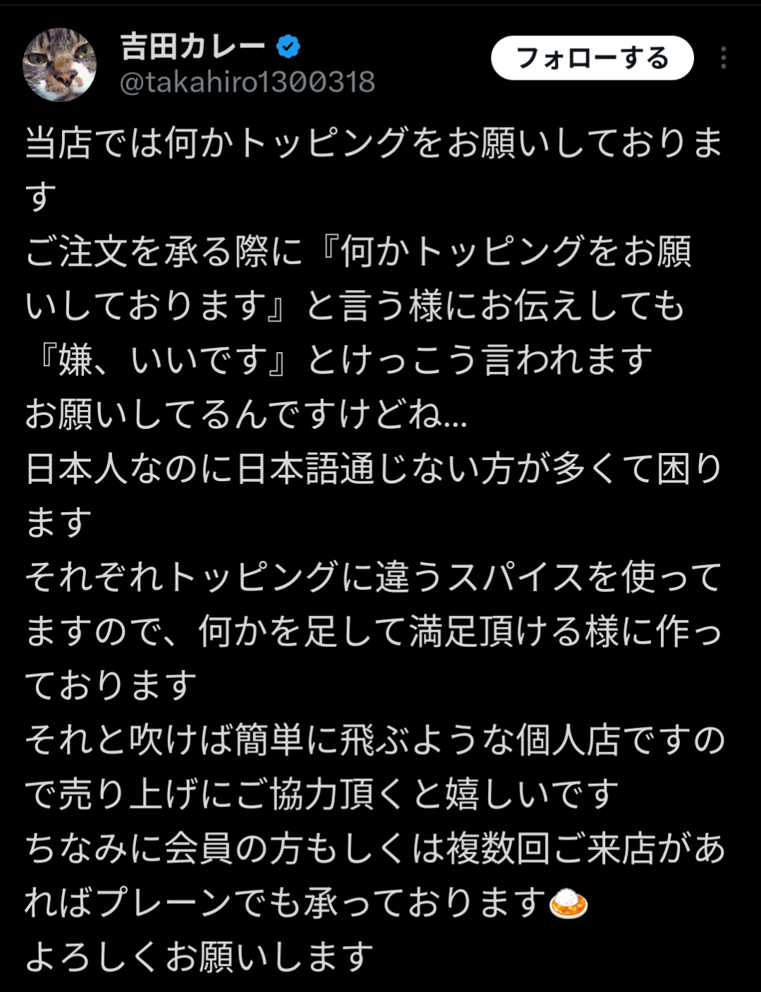 | … | 526/04/30(木)08:23:42No.1425193756+>最初からトッピング込みの値段にすればいいんじゃね? |