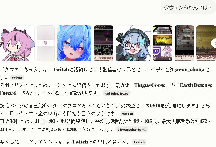 | … | 6126/04/30(木)13:37:10No.1425259901+こんな感じでAIに概要書いてもらってレイド貰った人のこと紹介してる配信とかも見たことあるのだ |