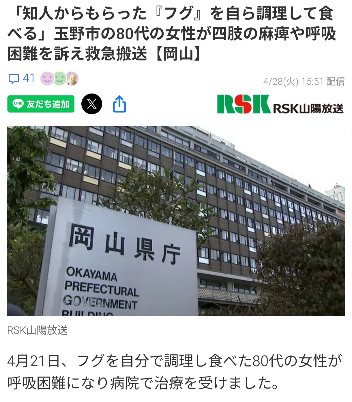 | … | 726/04/30(木)20:30:30No.1425377258+ちょくちょくフグ毒ニュース見るからフグは毒持ってるって知らない人結構いるのかもしれん |
