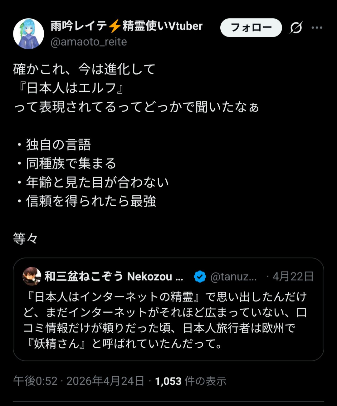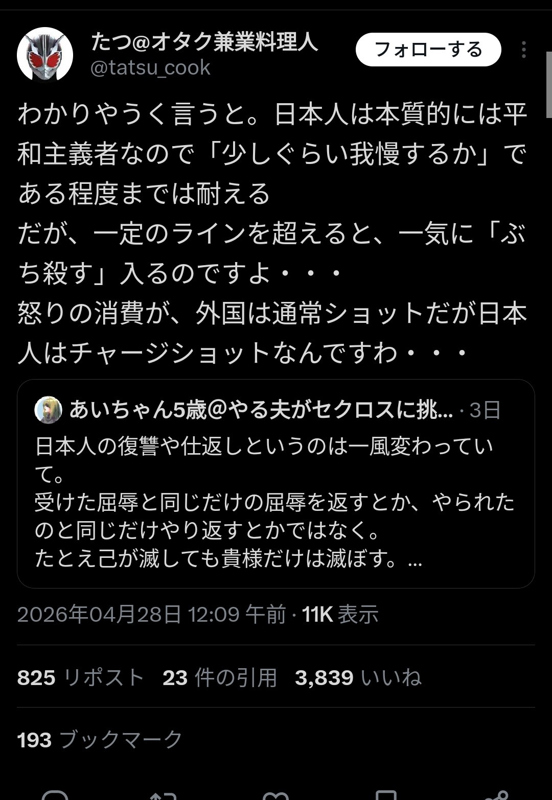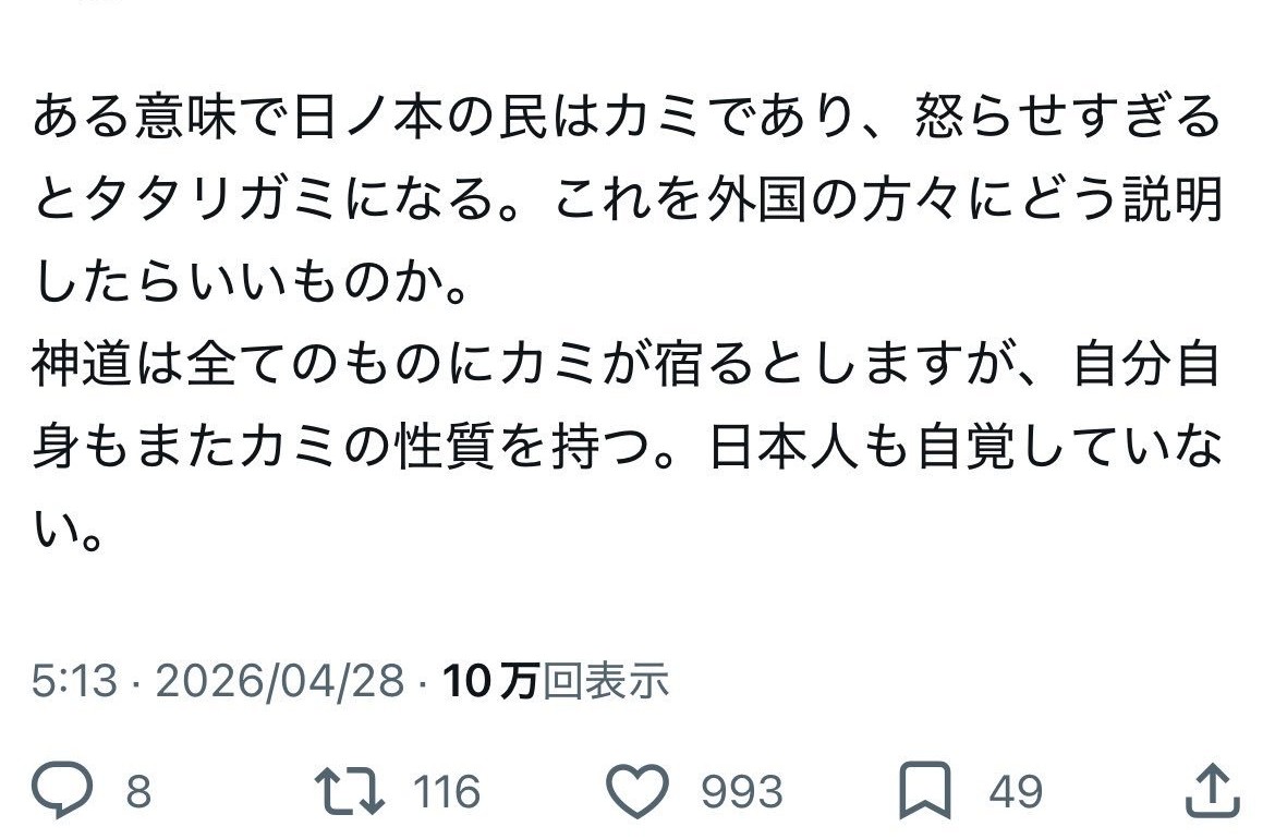 | … | 1526/04/30(木)23:53:29No.1425456767そうだねx1takaT @takat2003 (2026/04/29 12:50:14) |