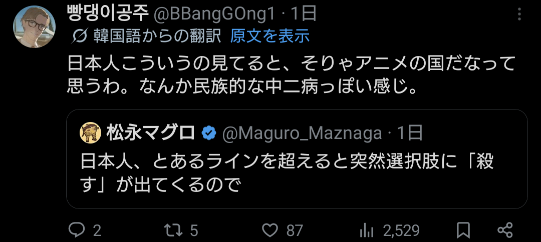 | … | 5726/05/01(金)00:13:13No.1425463086そうだねx6ラノベ作家とかが最近Xで海外ニキとやらによくこういうこと言ってるけど正直やめて欲しいなと思う |